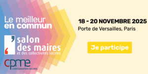 Evènement, la CPME expose au Salon des Maires les 18, 19 et 20 novembre prochains à Paris Expo Porte de Versailles.